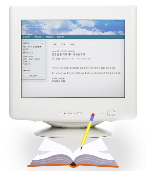 아좋사’가 남녀상열지사의 커뮤니티였다면 선배들이 학교다니려면 반드시 가입해야 한다고 추천해주는 카페도 있었다. ‘아주대학교 수강신청&리포트’. 카페 이름답게 수강신청과 리포트, 시험을 위한 모든 정보가 집대성되는 카페였다. 특히 가장 학생들이 많이 애용했던 게시판은 ‘수강신청-수강후기’였다. ‘강의별 한 줄 평가’부터 단과대별 전공수업, 교양수업에 대한 생생하고 자세한 후기들이 가득했다.